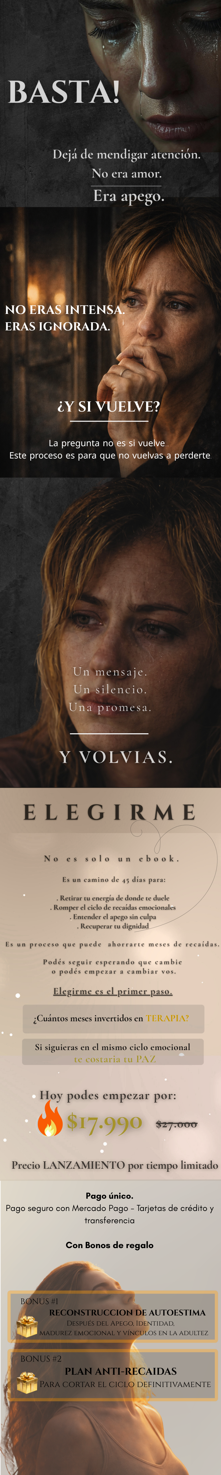 “Sentía que siempre volvía al mismo lugar, esperando un mensaje que nunca llegaba. Este ebook me hizo entender que no era amor, era apego. En unas semanas ya me sentía más fuerte. Fue el empujón que necesitaba para empezar a elegirme.”